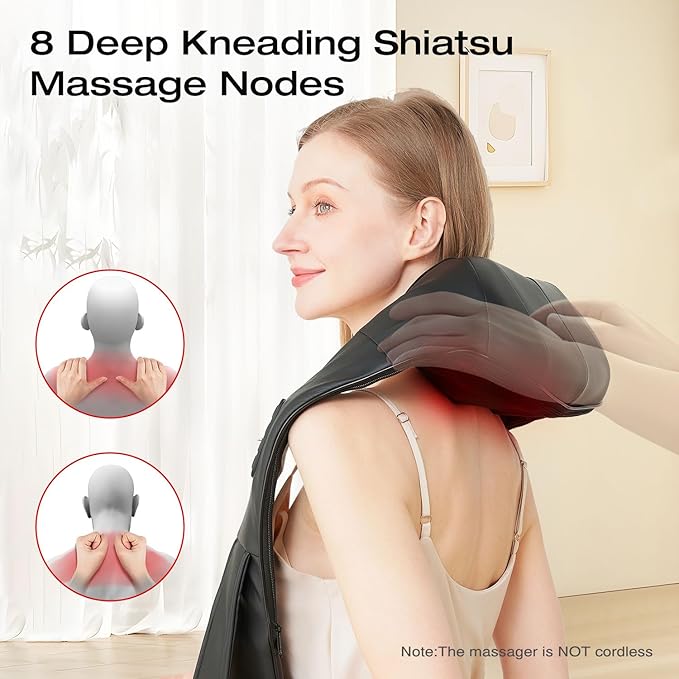 AERLANG – Masajeador Cervical y de Espalda con Calor Relajante – Amasador para Cuello, Hombros y Espalda